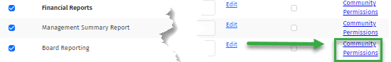 Step 2. Click the Community Permissions hyperlink for Board Reporting.