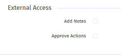 Approve Actions - Toggles the ability to approve actions, can only be toggled if the External Access option is checked