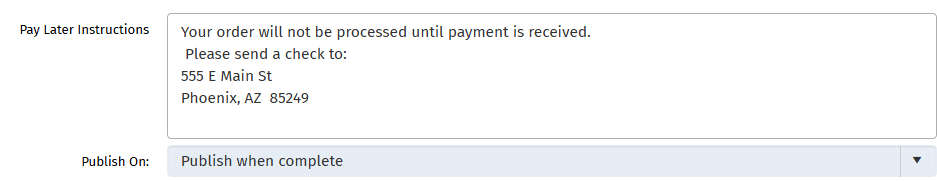 - Pay Later Instructions - Enter verbiage viewable by Resale Clients on PropDocs when Pay Later option is chosen.