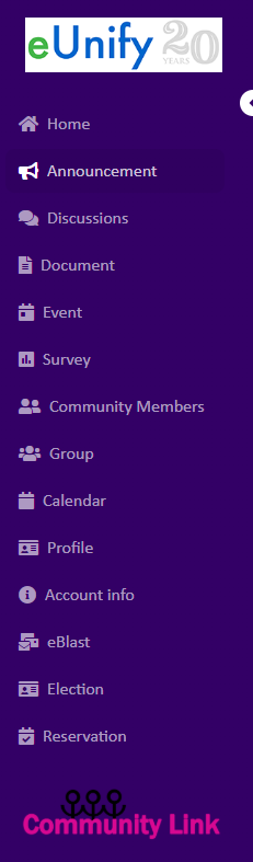 Feature tabs: The Tabs on the left will display various features in the Community and provide owners access to view/interact. Click each of the Tabs to view that feature.