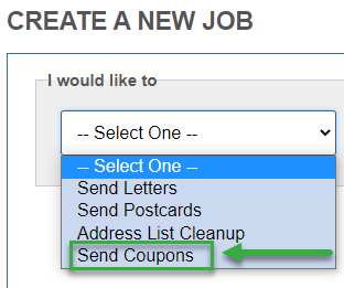 NOTE- Coupon(s) will not be visible until the Job Recipient List/Review step.