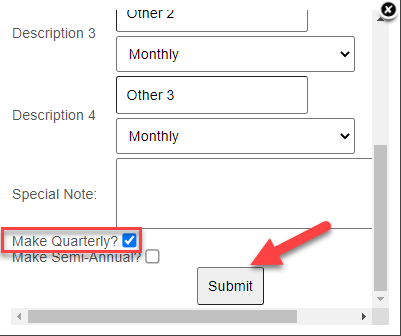 NOTE- Default is monthly coupons. Click on "Make Quarterly" to change from monthly default to quarterly.