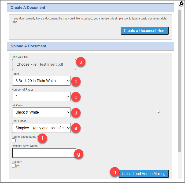 Add a Document - This is an optional field that allows you to upload an insert, if needed.