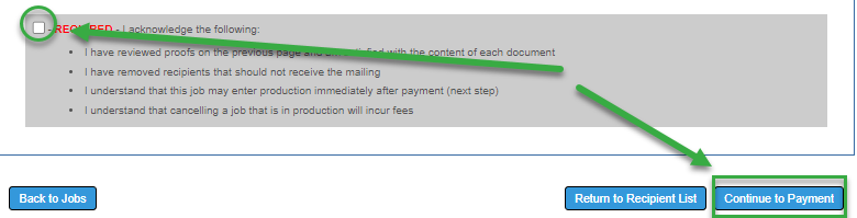 Required - Review acknowledgements and click on Required if approved and Continue to Payment to go to the next step.
