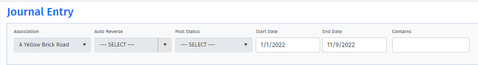 Step 5. Use the Search filters to select the Association and narrow the list of Journal Entries to the Open Period.