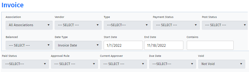 Invoice Date or Post Date- Select Invoice Date or Post Date from the drop down menu.