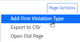 Step 2. Select Add Firm Violation Type from the Page Actions menu.