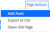 Step 2. Select Add Push from the Page Actions drop down menu.