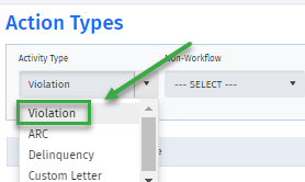 Step 2. Select Violations from the Activity Type drop down menu. (This will be the default)