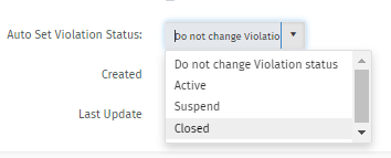 Auto Set Violation Status- Select an option below to automatically set the status of the Violation when this Action Type is taken.