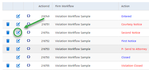 A workflow is a defined, step by step process that can be partially, or fully automated to manage violations including, auto generation of letters and emails, account notations and more, and can be fully customized to meet the needs of each Association. There are multiple steps involved in the process of creating a Violation Workflow using the Manage Firm Workflow and the Manage Action Types pages.