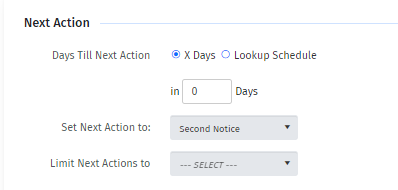 Days Till Next Action- Enter the number of days until the next Action can be taken, or select from the Lookup Schedule. CLICK HERE for more information.