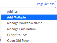 Step 4. Select Add Multiple from the Page Actions drop down menu. This will allow you to add all the new Action Types you created in Part 2.