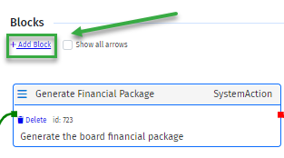 Next Block- Select the next Block based on a positive or negative response. For example; if monthly financials are not approved (negative decision) they are returned to the Accountant for edits, if they are approved (positive decision) they are published on the portal.