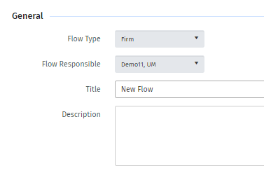 Flow Responsible- Select the User name, or Profile from the drop down menu that will be responsible for initiating the Flow.