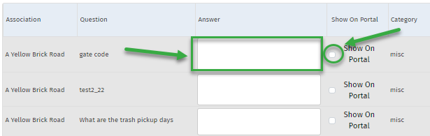 Fact Responses are answers to Fact Questions that allow Owners to easily access important information about their community. The Fact Reponses Grid Page allows responses to be managed quickly and easily on one page without the need to edit individual responses one at a time.